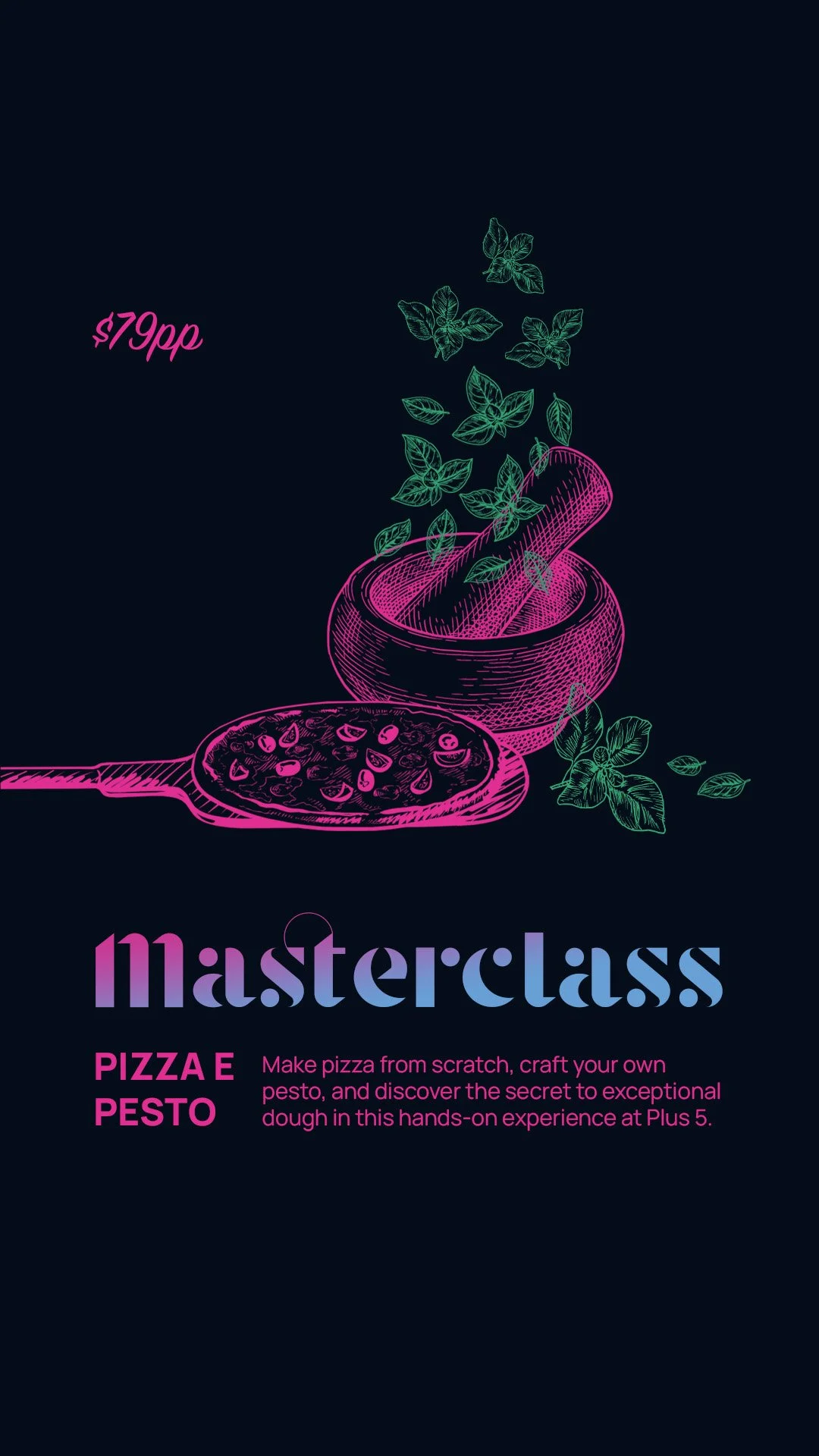 Make pizza from scratch and create your own pesto in this fun hands-on masterclass at Plus 5 Bar.